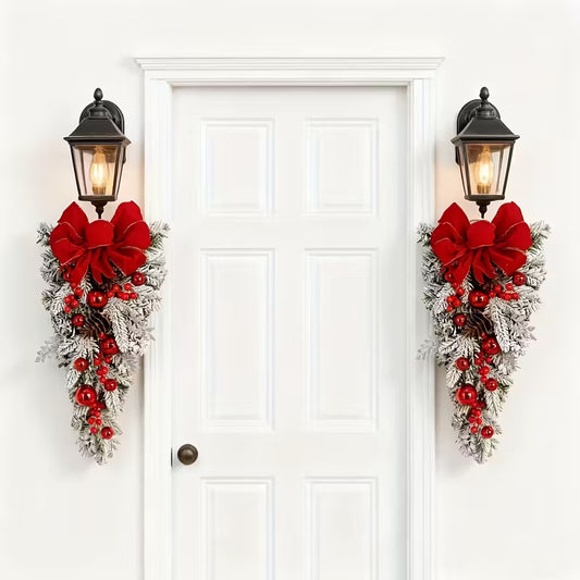Christmas Garland with Red Bow, Artificial Wreath for Indoor and Outdoor