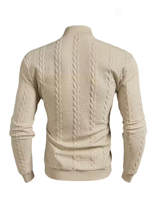 3pcs Men'S Casual Knit Sweaters - Long Sleeve, Button-Up Collar, Solid Color, Regular Fit for Golf & Camping